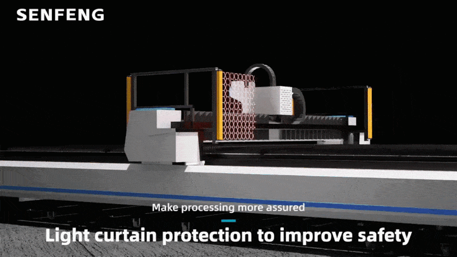 O serie de senzori laser super-sensibil sunt instalați pe grindă pentru a opri imediat echipamentul atunci când cineva intră din greșeală în zona de procesare, evitând rapid pericolul.