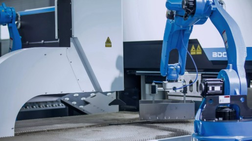 Roboții cu șase axe îndeplinesc funcții esențiale în timpul proceselor de îndoire, încărcare și descărcare a foilor. Îndoire non-stop, 24/7 . Viteză de îndoire multiplicată pentru o producție flexibilă în masă