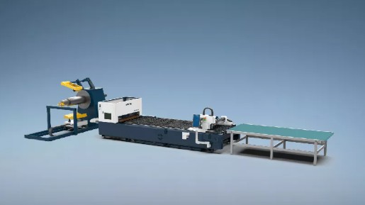 Pentru această linie de tăiere, dispozitivul de îndreptare și mașina de tăiat cu laser sunt combinate, oferind atât funcționalitățile specifice, cât și un proces mai simplu de transport, instalare și depanare comparativ cu echipamentele individuale. Reduce amprenta totală cu cel puțin 50%. Optimizează utilizarea spațiului în atelier