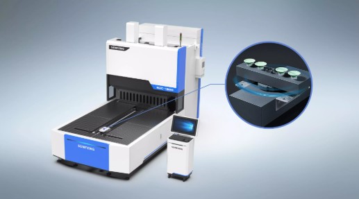 Sistemul de încărcare cu ventuze utilizează ventuze cu vid pentru a aspira și roti foile într-un interval de 360°. Cele două rigle de ghidare permit poziționarea precisă și ajustarea automată a unghiului de îndoire. Periile moi de pe patul mașinii protejează foile de eventuale zgârieturi. Acest tip de mașină este deosebit de potrivit pentru foi ușoare și subțiri.